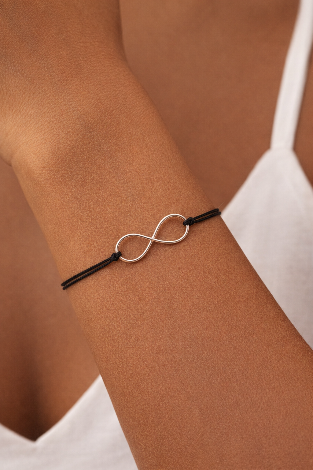 925 Sterling Silver Black String Infinity Bracelet – Minimalist Adjustable Kabbalah Bracelet